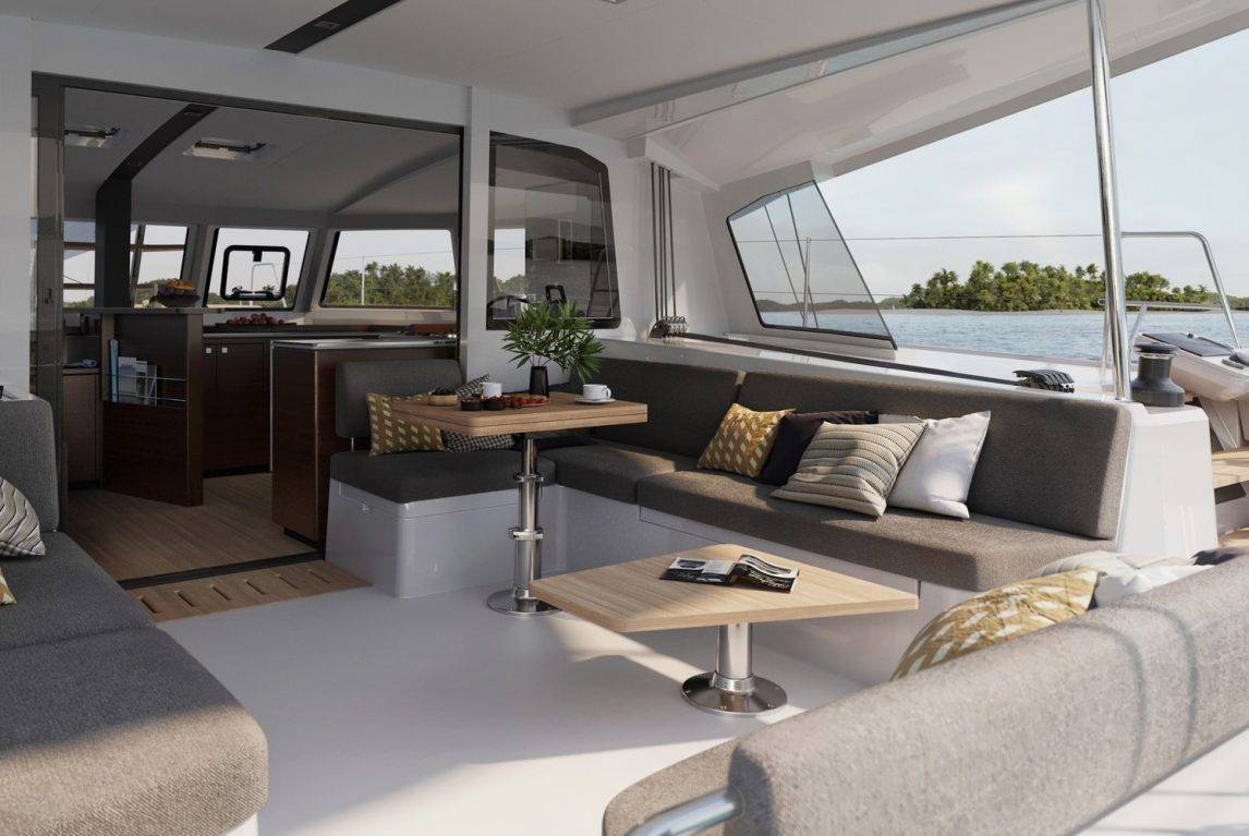Catamaran haut de gamme de 13,30m de long et 7,30m de large avec à bord tout le confort d'une belle maison.