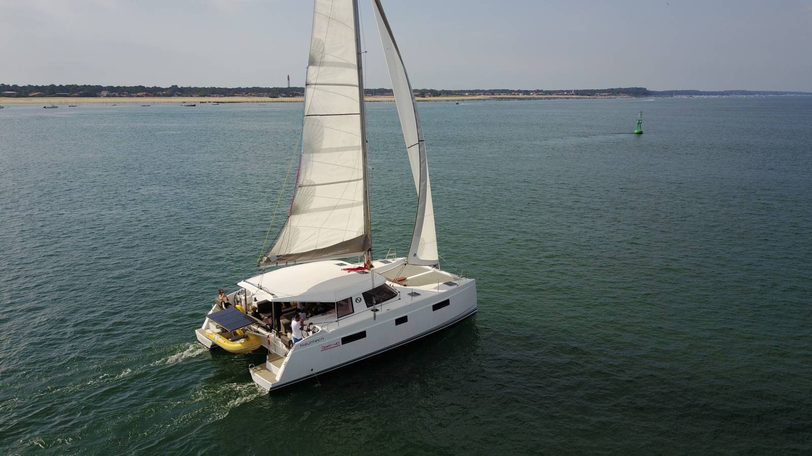 Le catamaran c'est également le plaisir de naviguer à la voile, sans bruit, sans pollution, un instant magique inoubliable de bonheur partagé pour fêter une promotion à Arcachon en bateau.