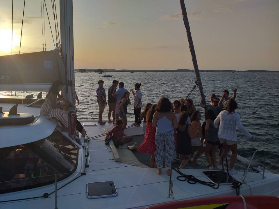 En fonction du nombre exact de personnes il faudra trouver le meilleur compromis en combinant au mieux nos 4 catamarans qui ont des capacités d'accueil différentes (11,15,20 et 21 personnes).